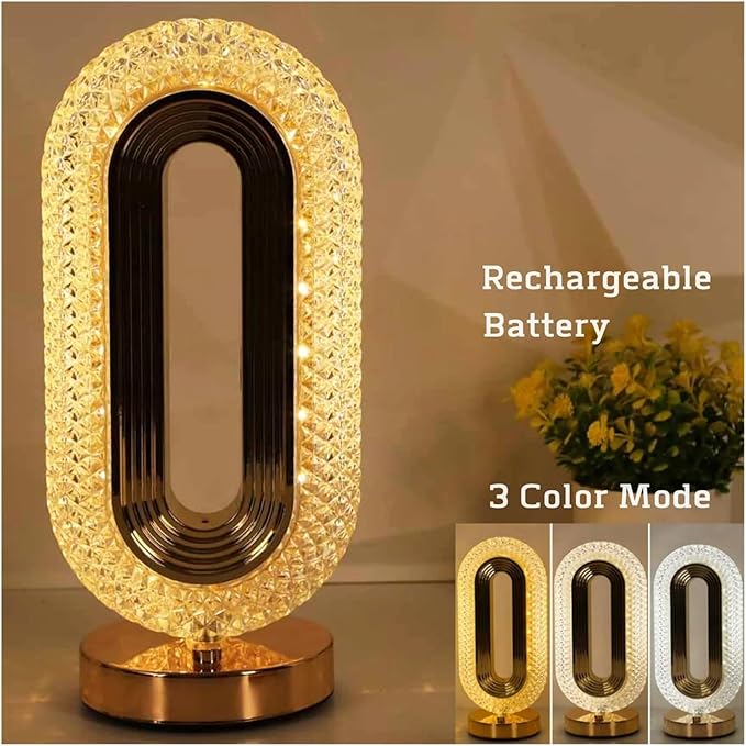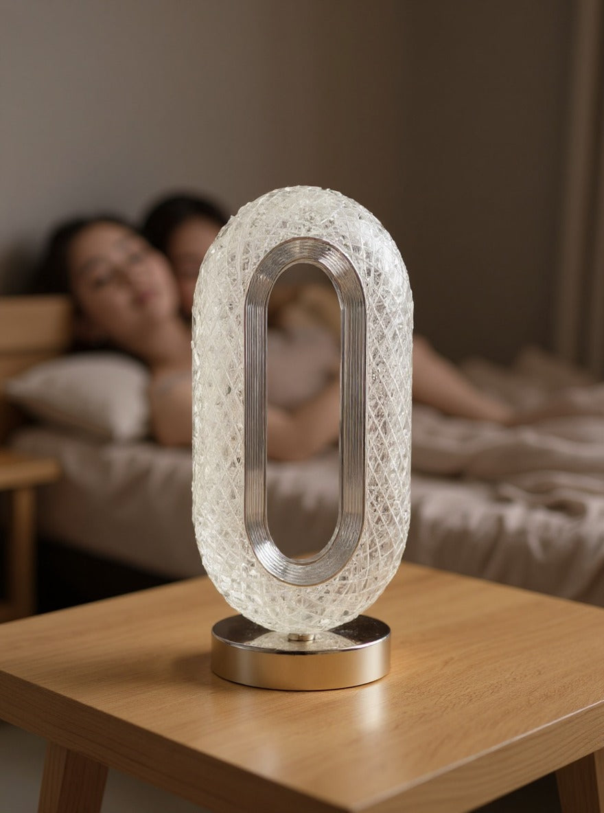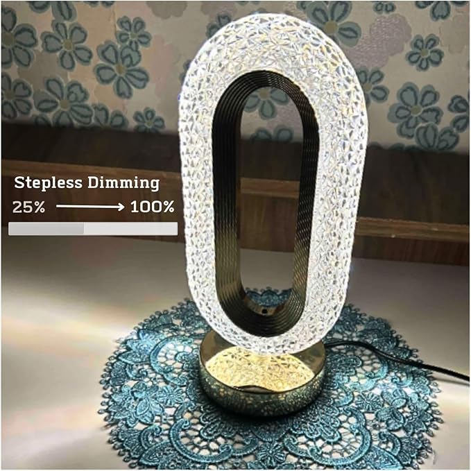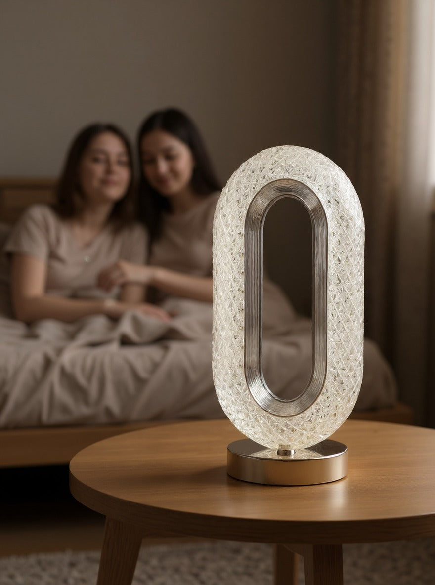 Add a touch of luxury to your room with the Oval Crystal Table Lamp by Janorify, beautifully designed in Lahore, Pakistan. Featuring a sleek oval shape, crystal-cut design, and USB rechargeable functionality, this lamp creates a stunning light effect — perfect for bedrooms, lounges, or as an elegant gift.