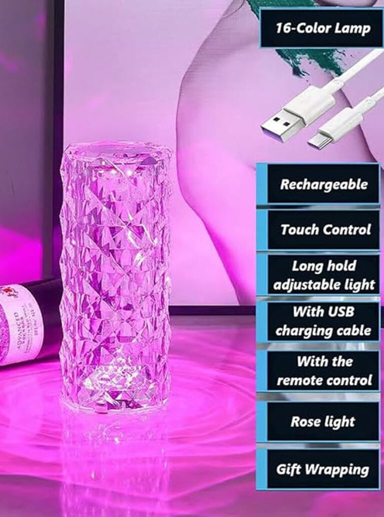 Crystal LED Table Lamp – 16 Colors, Touch Control, Rechargeable by Janorify!